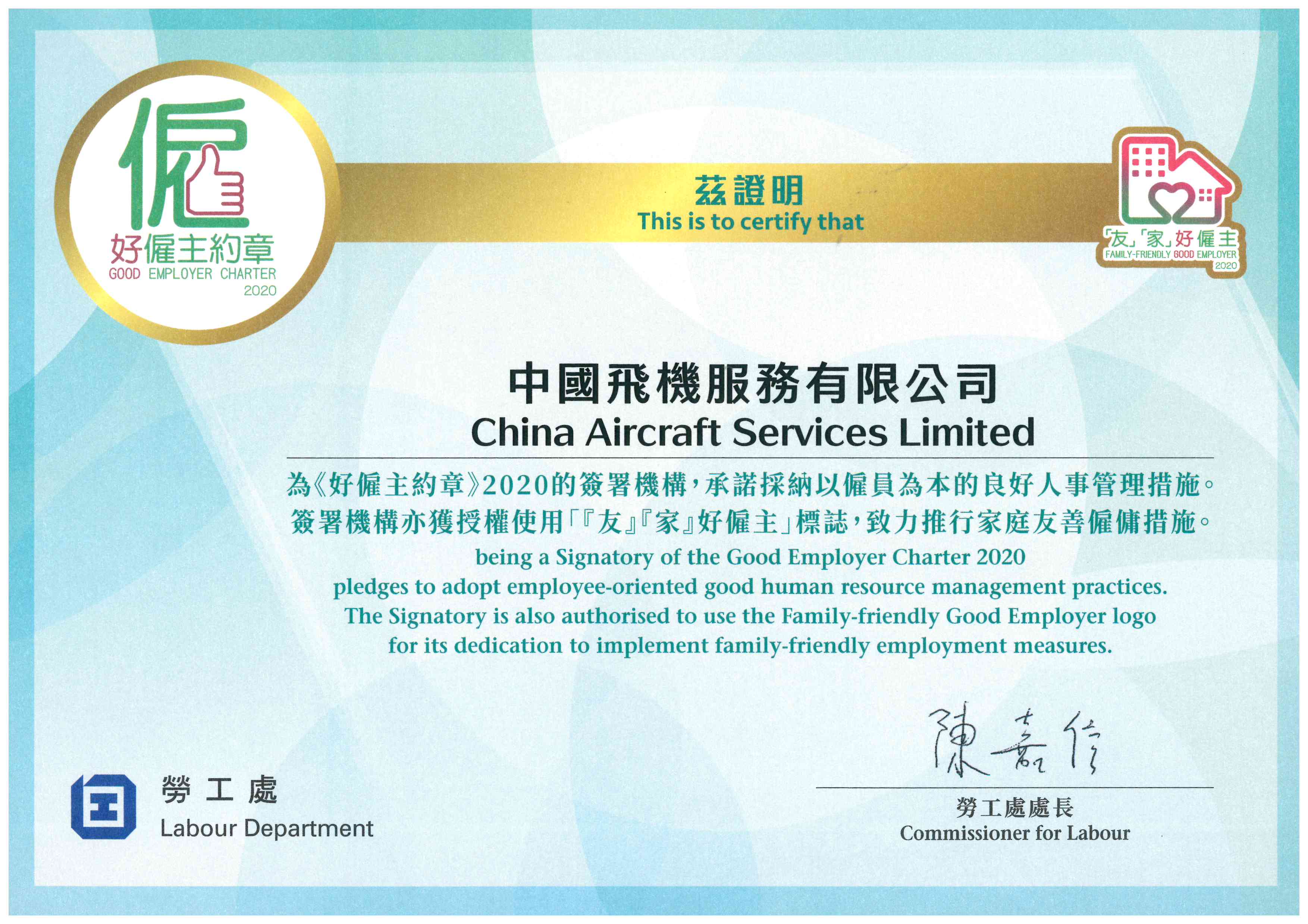 CASL signs Good Employer Charter, awarded Family-Friendly Good Employer 2020