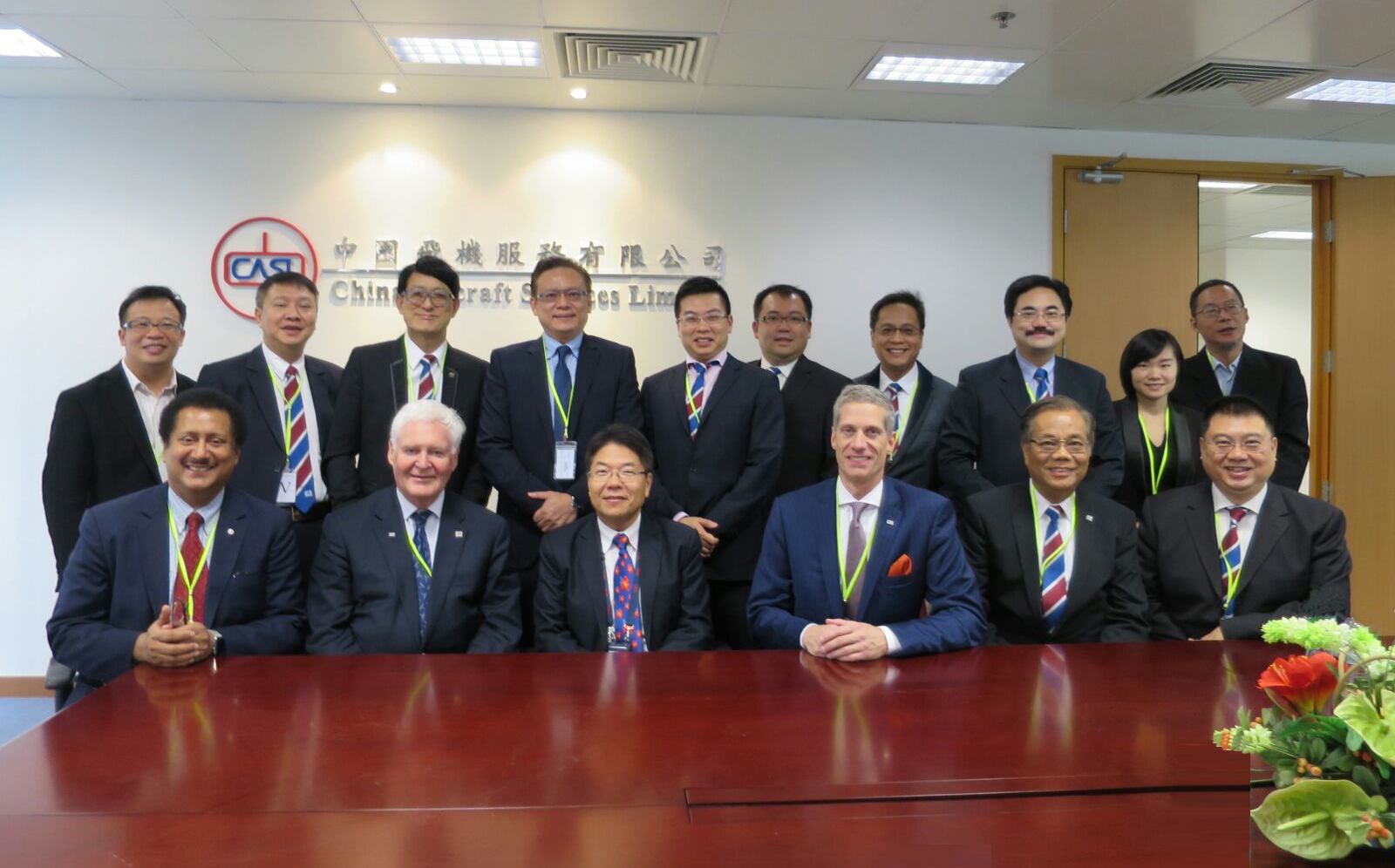 國際汽車及航空工程師學會主席率領總會及香港分會理事會成員,於2015年12月1日參觀中飛公司機庫。中飛公司行政總裁張謙華博士親自接待來賓,介紹機庫運作及設備等。