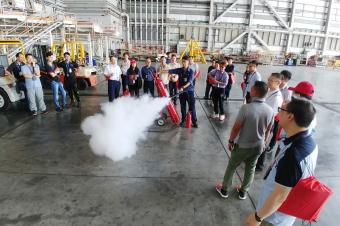 為提高同事的防火安全意識和推廣正確的消防知識,中飛公司於6月16日為二十多名「消防糾察員」舉辦了一場消防訓練,並於6月21日舉行機庫消防演習。
