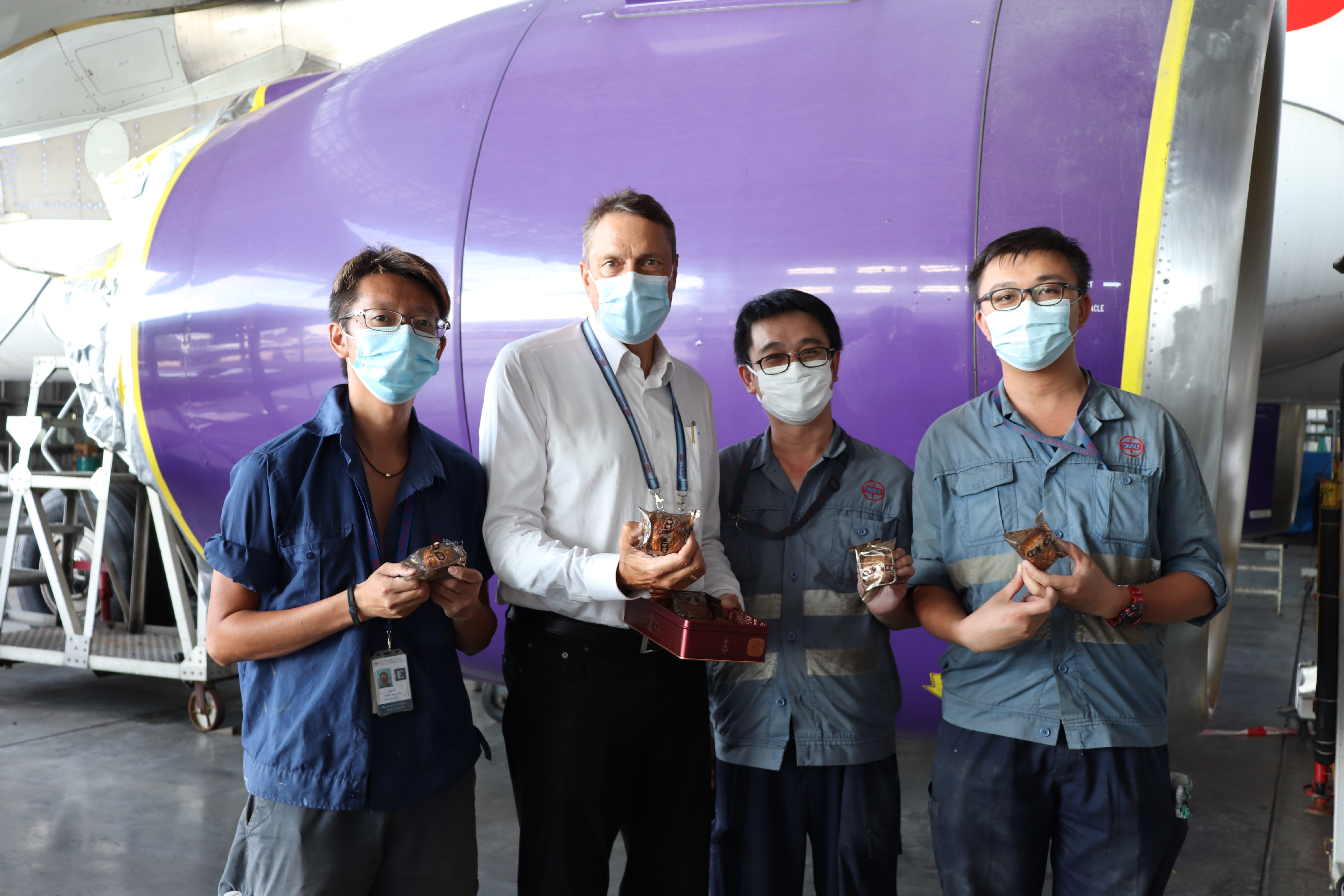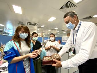 中秋節象徵團圓,中飛今年向所有同事派發月餅,將歡樂帶給中飛大家庭的每一位。