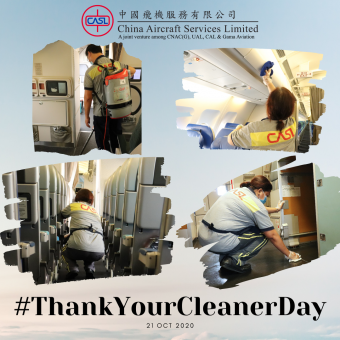 今日是「感謝清潔人員日」,中飛除了有負責辦公室的清潔高手外,我們還十分榮幸有幾百位盡忠職守的前線機艙清潔員在每次航班起飛及降落後清潔機艙。尤其在現時疫情下,機艙清潔員在確保航班衛生及安全上擔當不可或缺的角色,實在是每趟旅程的幕後英雄。
