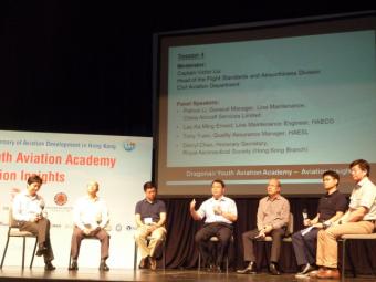 為慶祝香港航空發展一百週年,香港民航處,港龍航空有限公司及香港航空青年團於2011年6月25日舉辦 “港龍青年航空學院 - 航空業介紹研討會及參觀” 活動。 是次活動除為慶祝香港航空發展一百週年外, 目的是提升青少年對航空專業的認識及航空業就業機會及概況。 中國飛機服務有限公司(中飛公司)是主要參與機構之一, 中飛公司航線維修部總經理李國田先生(左二) 作為嘉賓講者代表中飛公司出席是次活動並與參加者分享航空業資訊及就業概況。